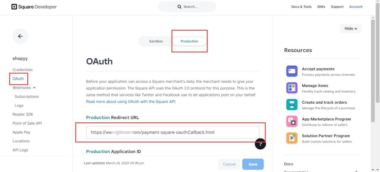 登录Square平台,复制Redirect URL步骤依次按下图顺序: