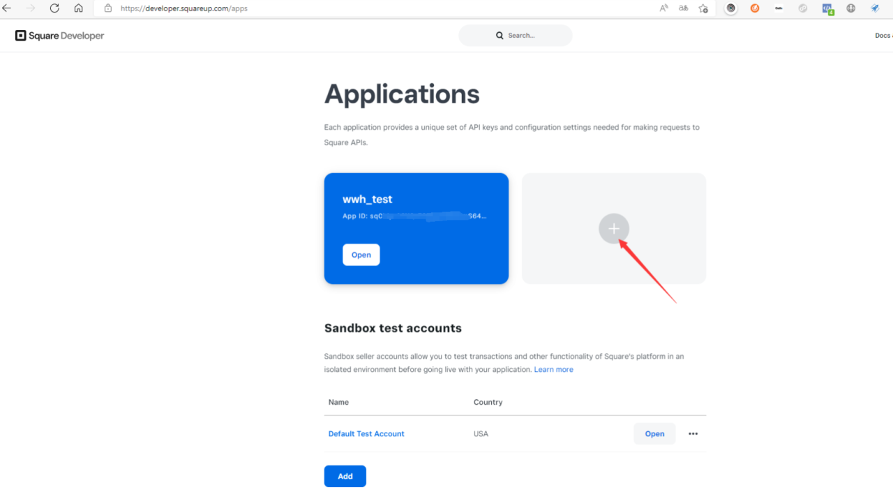 1)先登录Square平台,再访问https://developer.squareup.com/apps创建应用